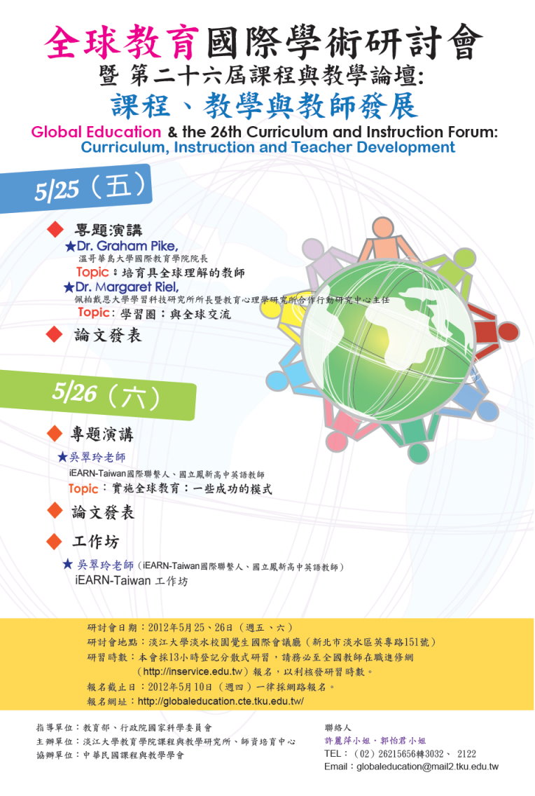 [代轉訊息]淡江大學師資培育中心-全球教育國際學術研討會暨第二十六屆課程與教學論壇:課程、教學與教師發展