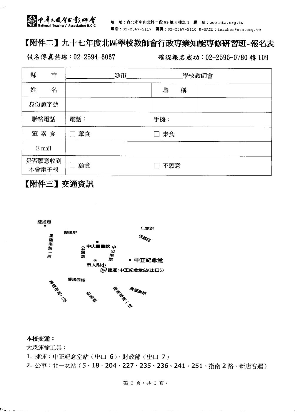 [研習訊息]請報名97年度北區學校教師會行政專業知能專修研習班