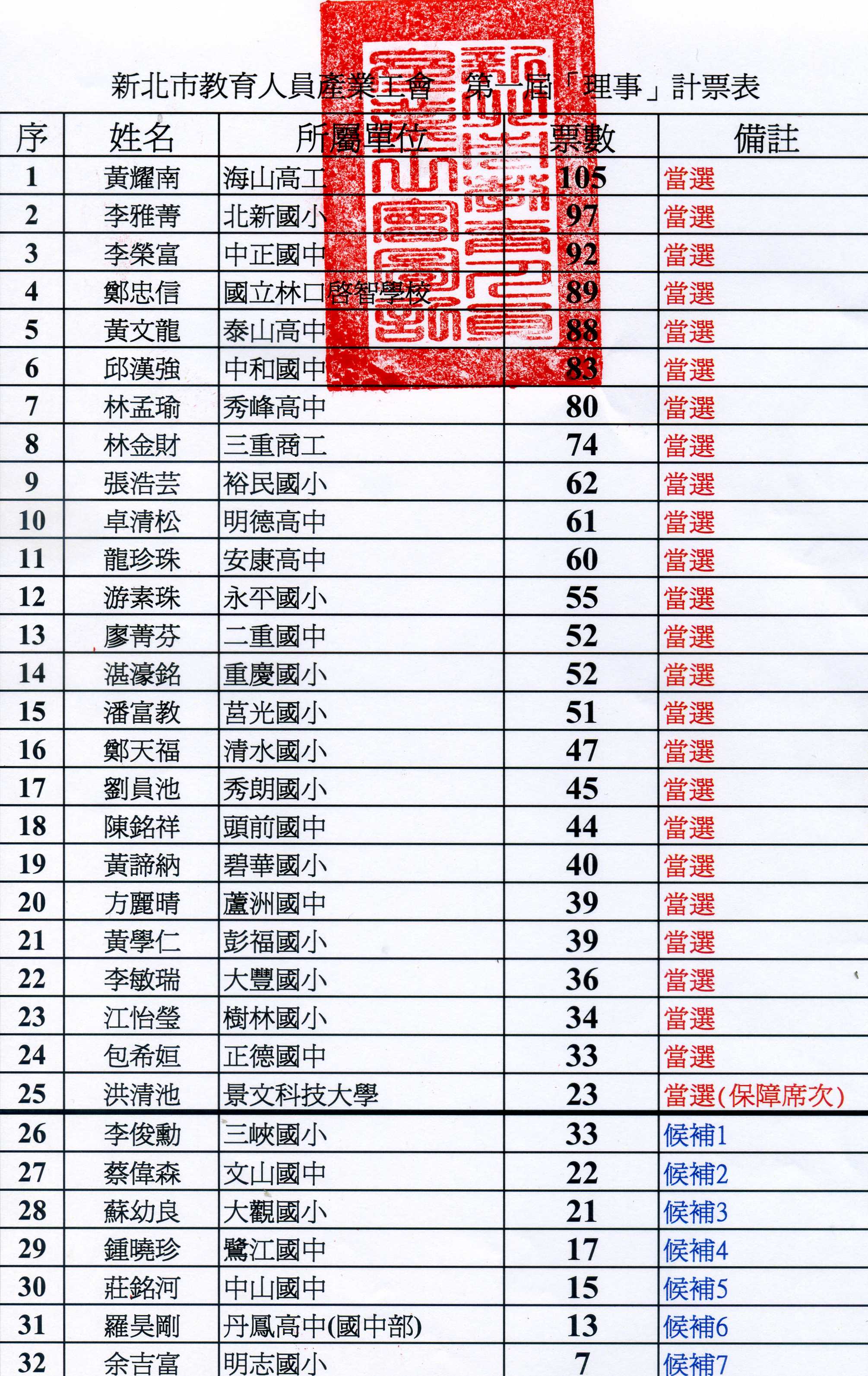 名稱: 	新北市教育人員產業工會第一屆理事當選人.jpg