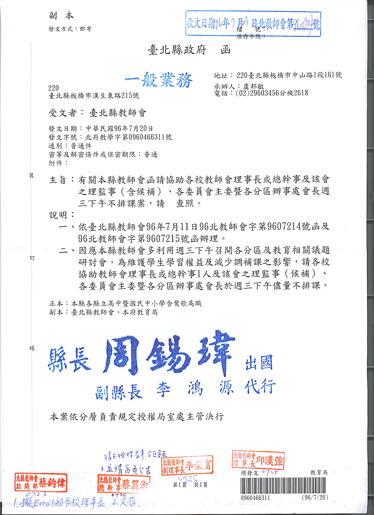 [會務報告]各校理事長或總幹事週三下午不排課案