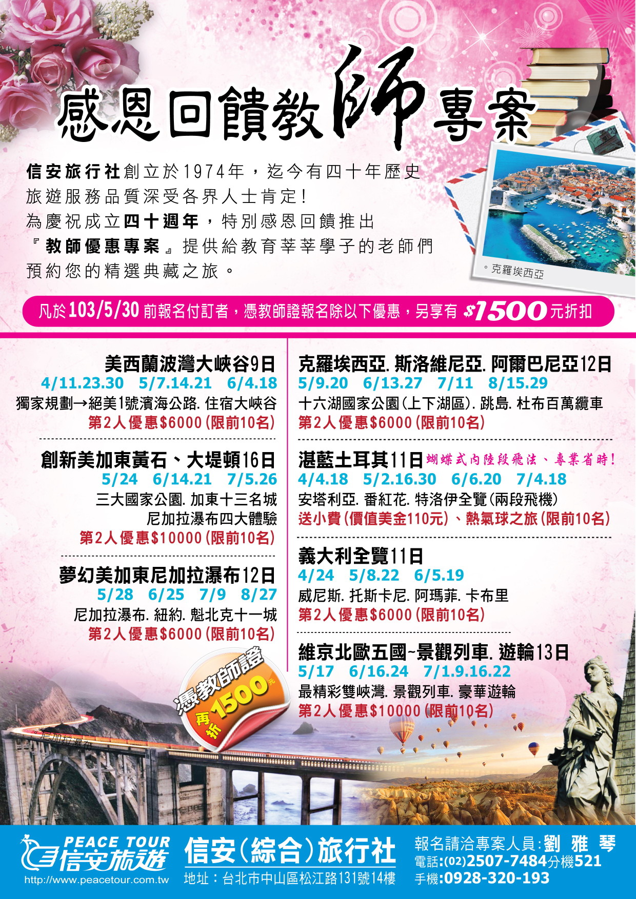 [代轉訊息]【信安旅行社 感恩回饋教師專案】