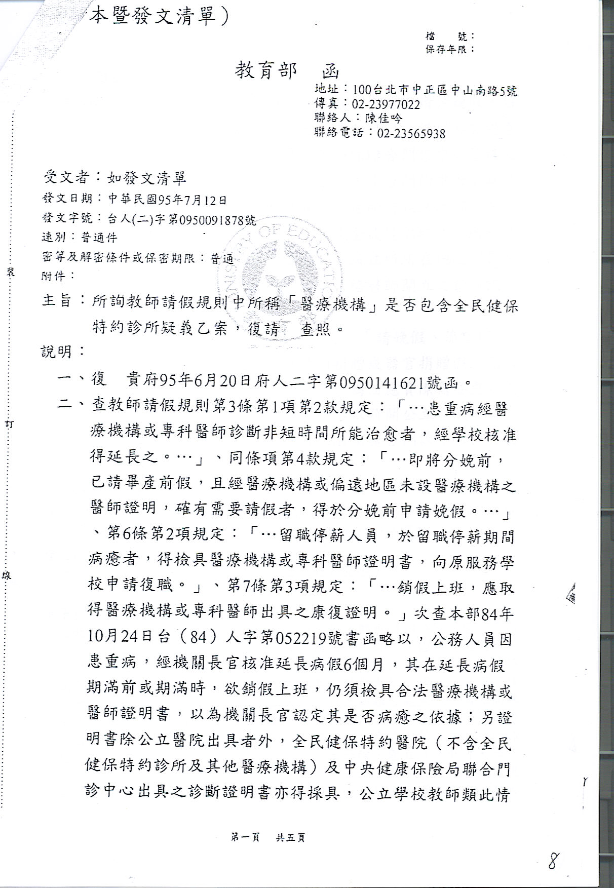 「教師請假規則」中所稱「醫療機構」認定疑義一案