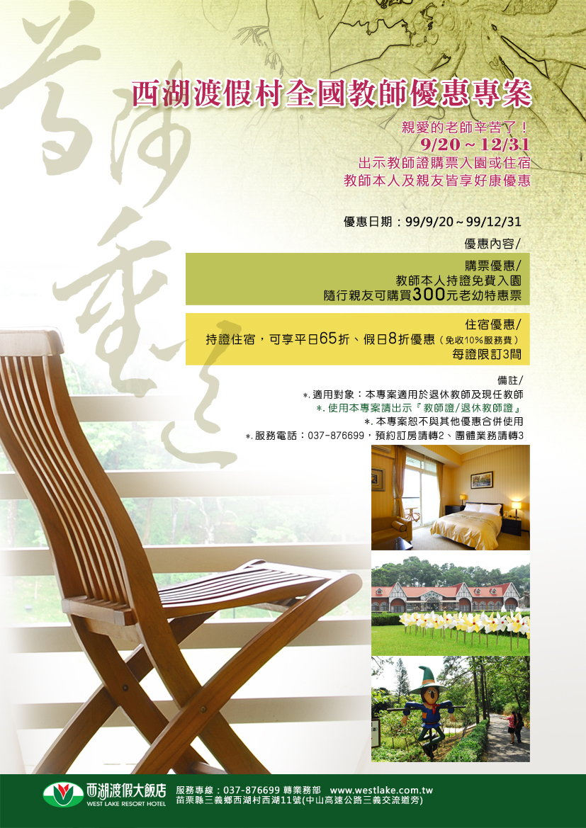 [代轉訊息]西湖渡假村全國教師優惠專案(最新版,附件.有最新DM)