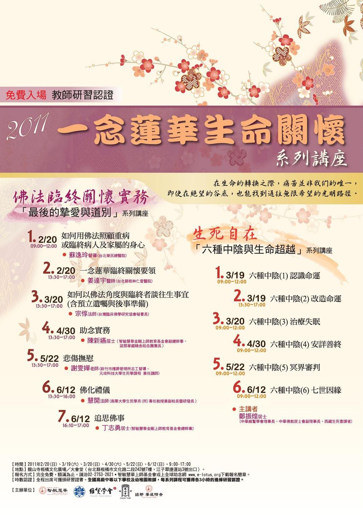 有關2011年2-6月「一念蓮華生命關懷」系列講座,