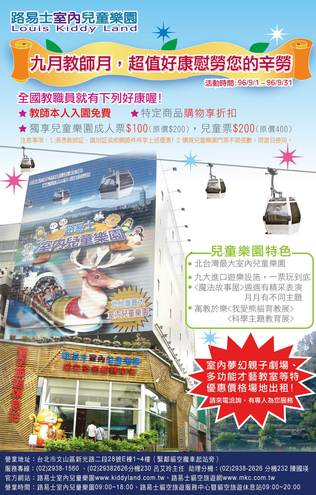 路易士室內兒童樂園(原名:台北木柵劍湖山兒童玩國) 歡慶教師節