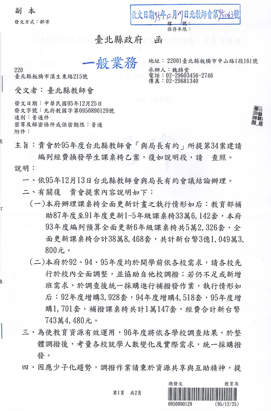 預設 局長有約教育局回文—換發學生課桌椅事宜