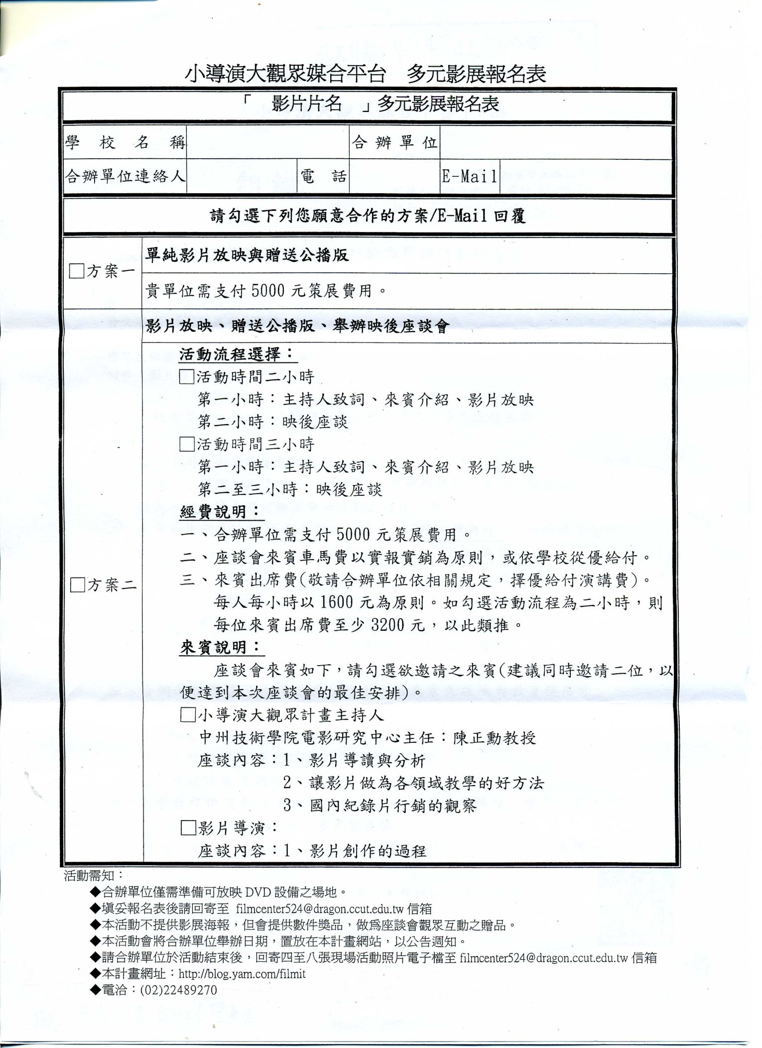 [代轉訊息]轉知「小導演大觀眾媒合平台」多元主題影展