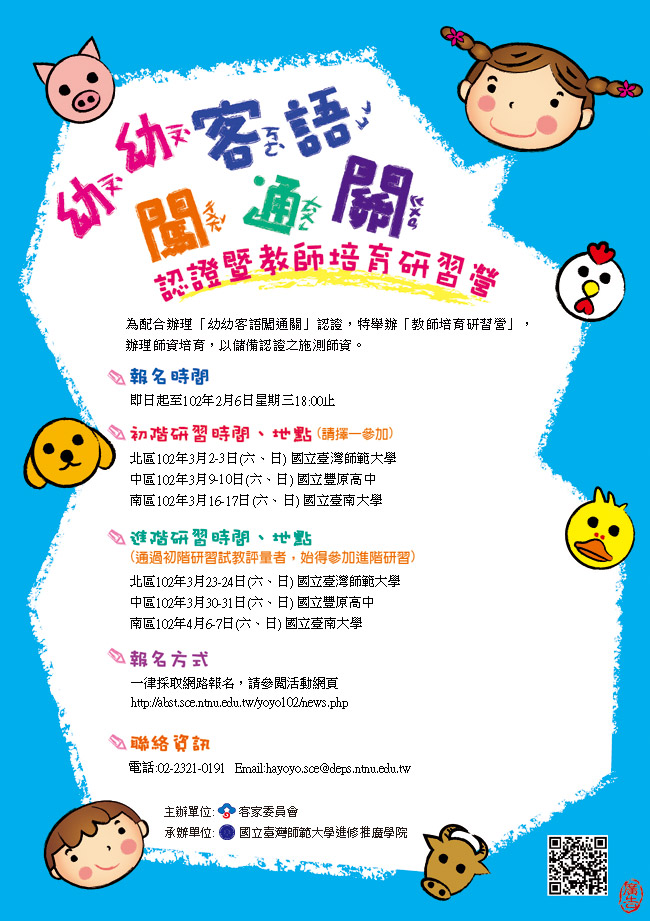 「幼幼客語闖通關教師培育研習營」開始報名了!