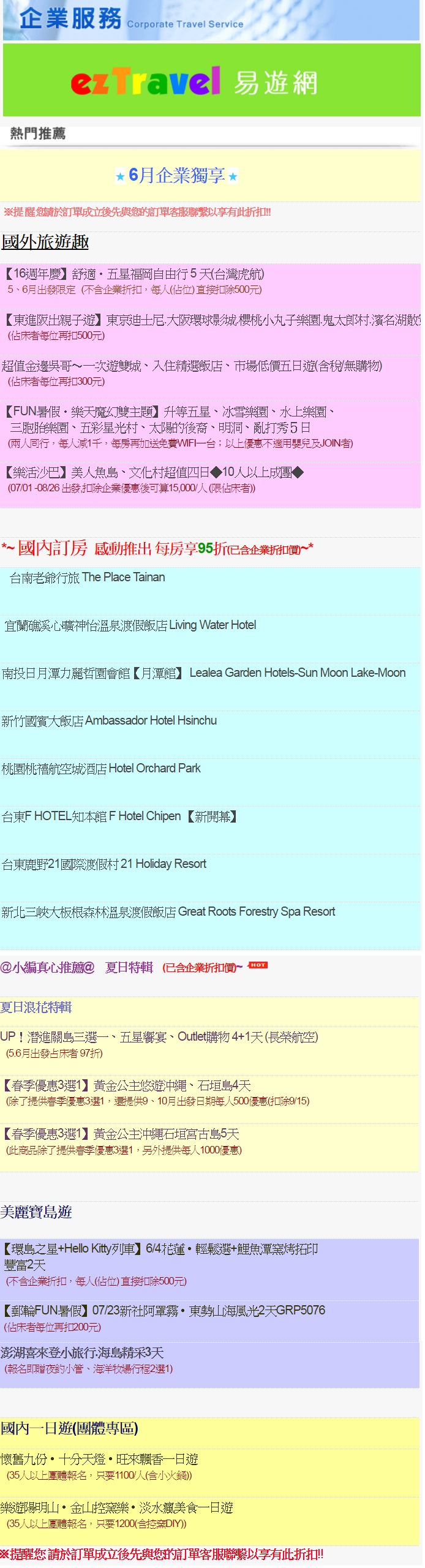 [旅行社]易遊網六月企業獨享優惠,暑假愛出遊