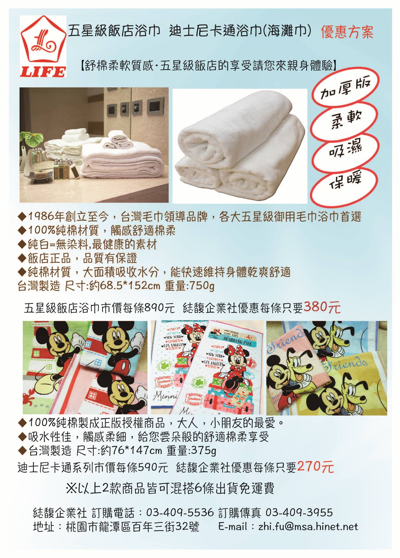 五星級飯店浴巾市價每條890元 綕馥企業社體驗價每條只要380元
