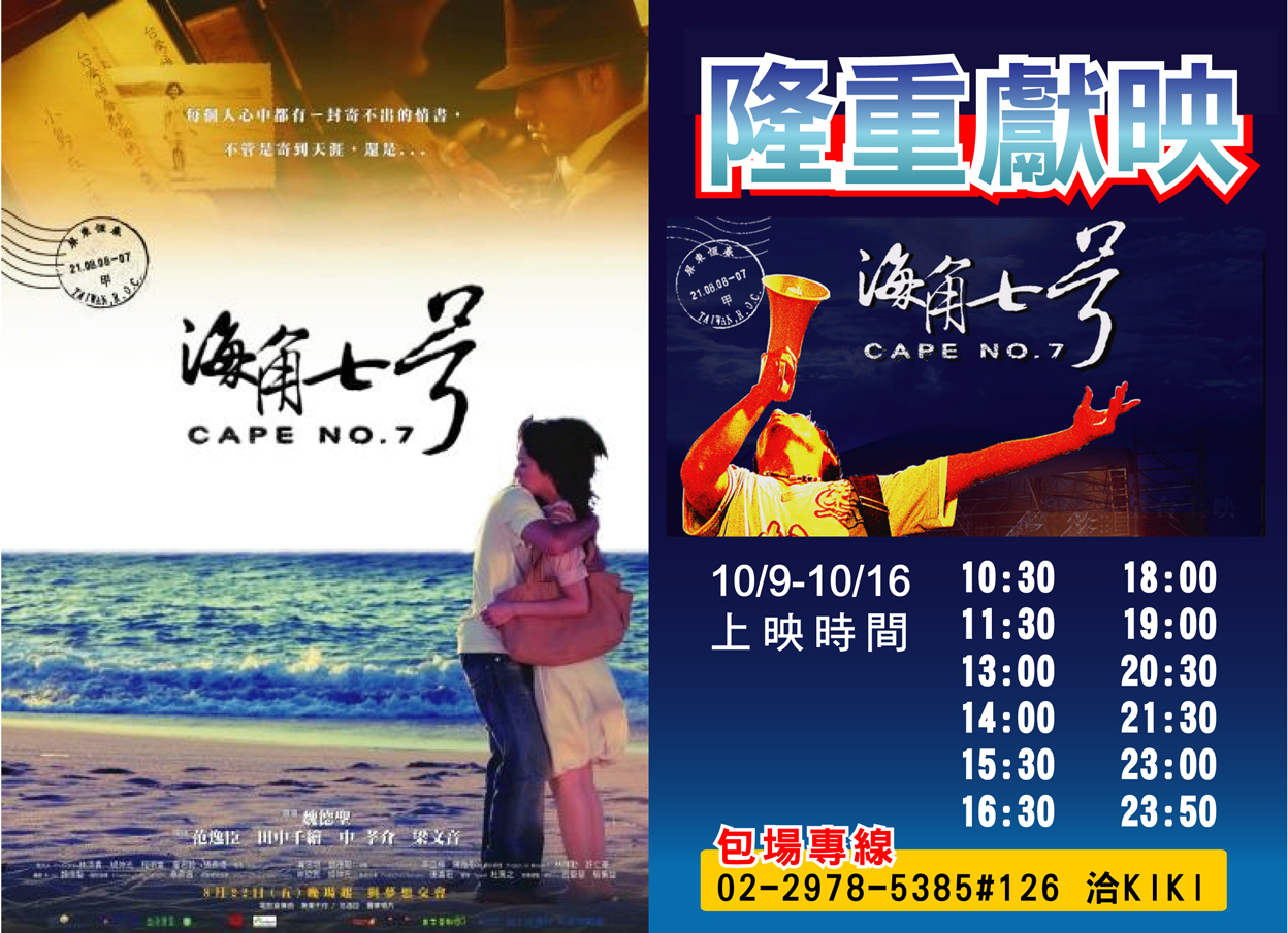 預設 [代轉訊息]天台影城因應影迷熱烈反應,【海角七號】10/9(四)隆重獻映(附上場次表給您參考)