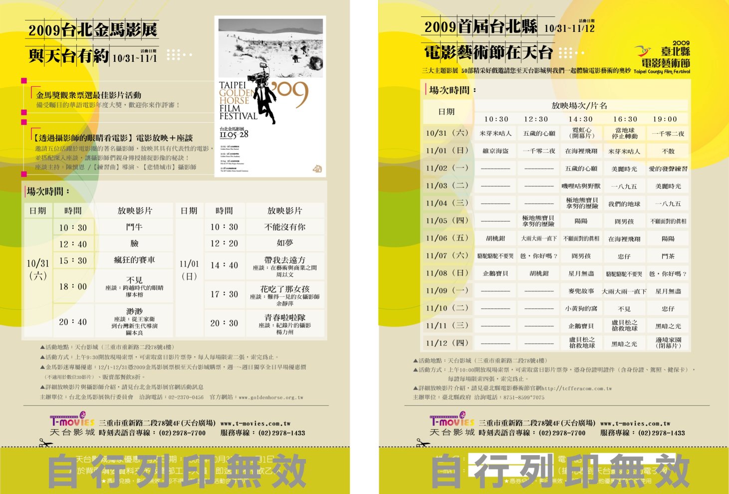附件為2009台北金馬影展及台北縣電影藝術節的活動場次表,