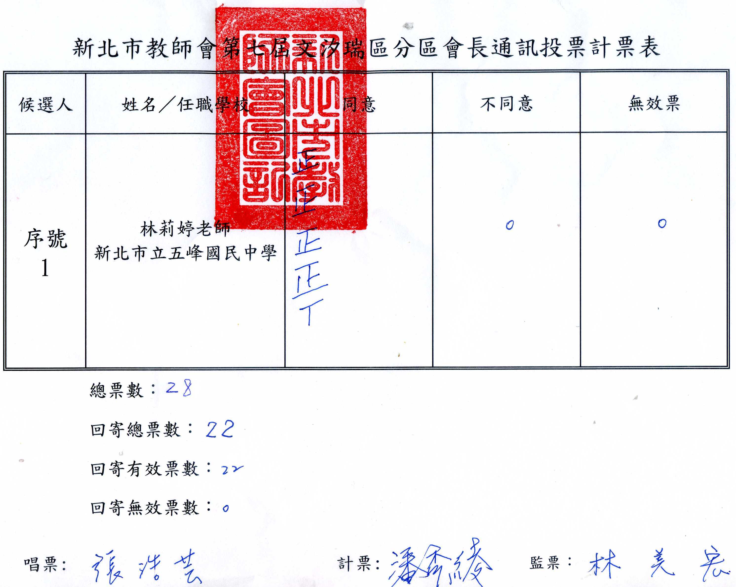 依據昨日文汐瑞分區會長通訊投票開票之結果,