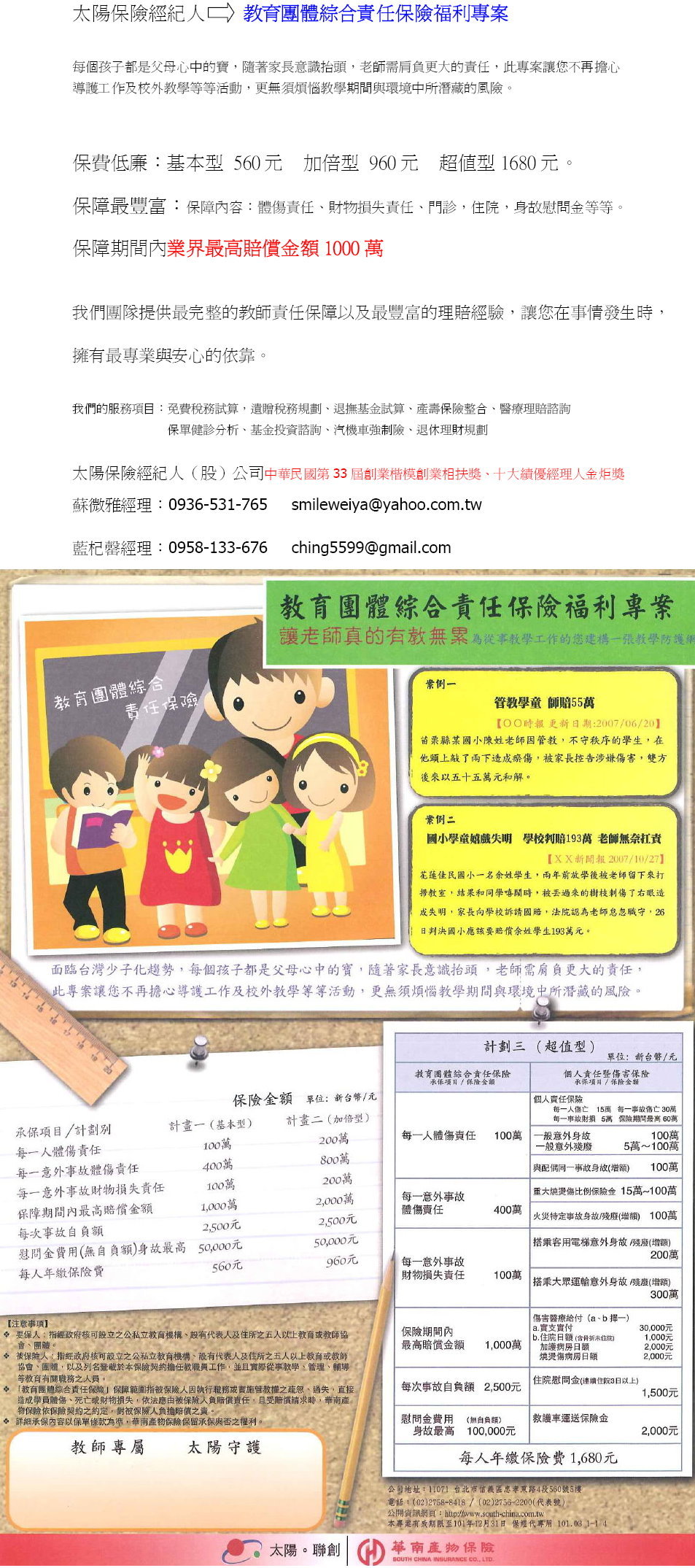 [代轉訊息]太陽保險經紀人-教育團體綜合責任保險專案