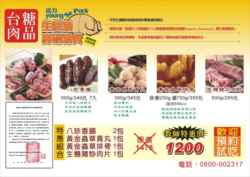 [代轉訊息]茗澤生機豬優惠活動又來了~