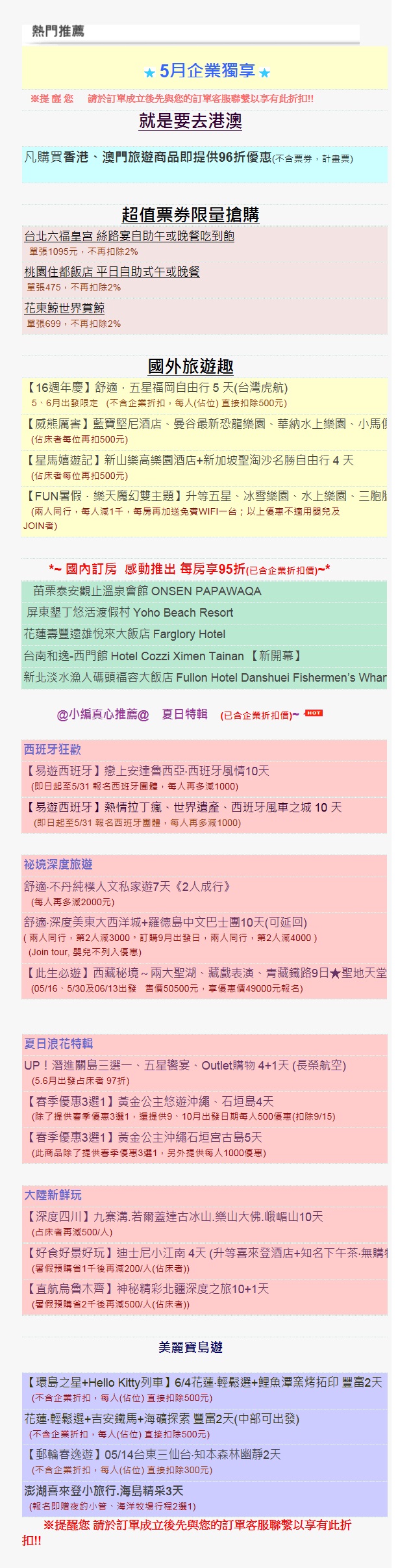[旅行社]易遊網5月份企業優惠