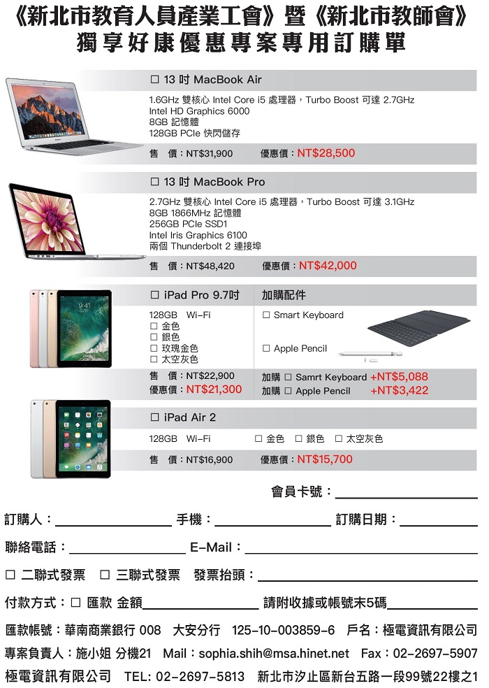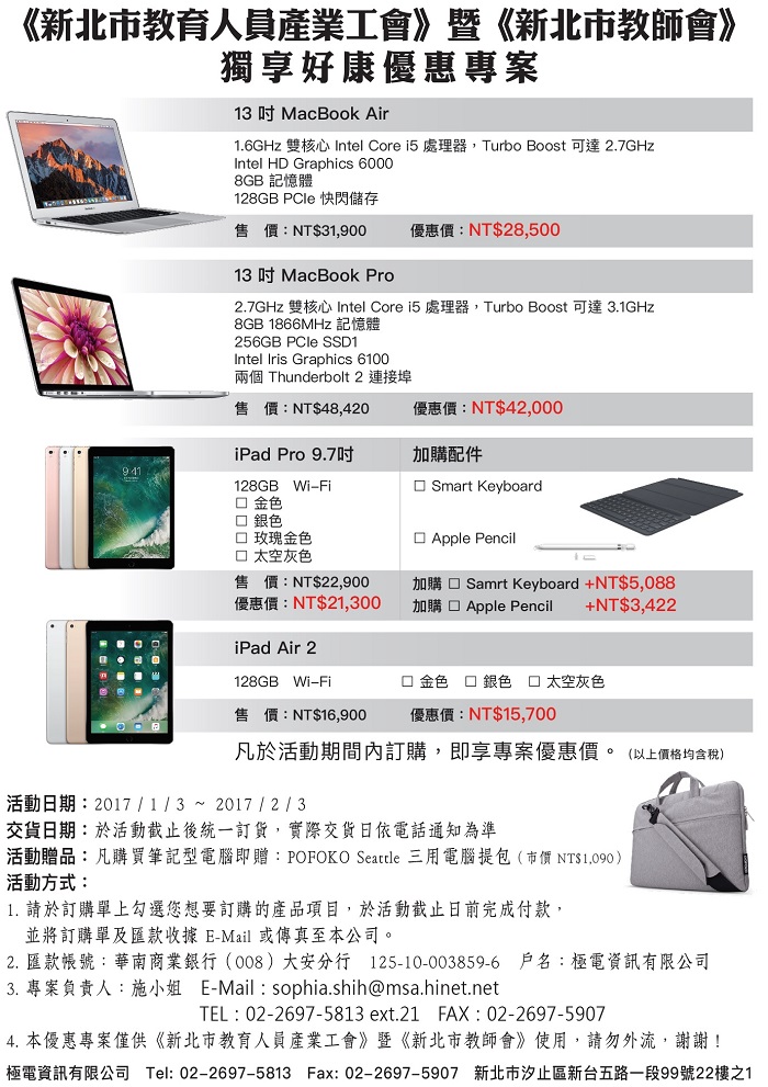 蘋果電腦、筆電優惠專案106.1/3-106.2/3