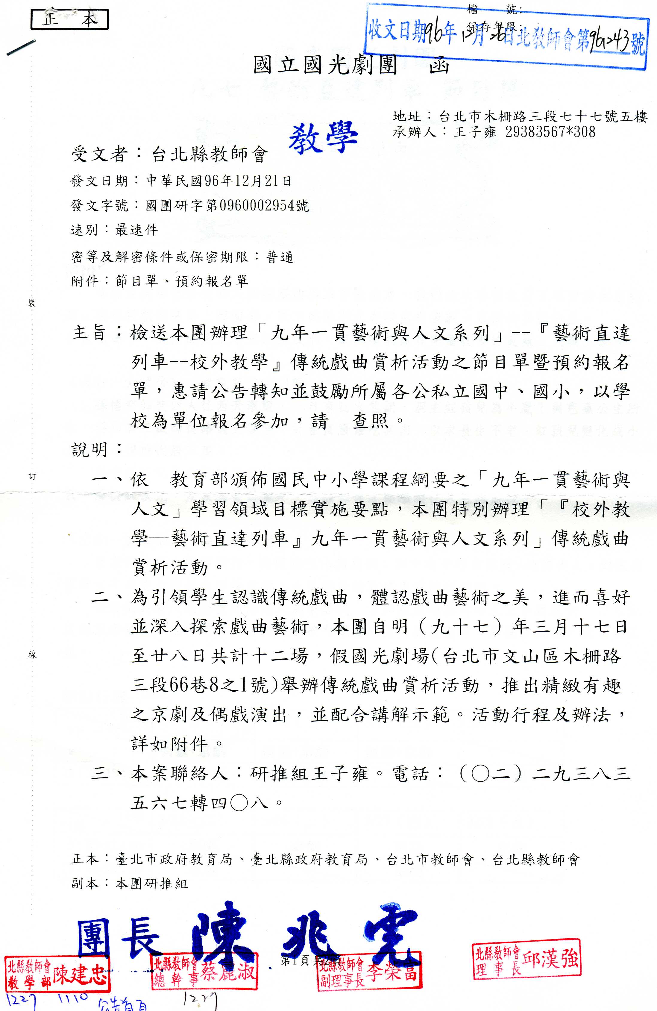 [代轉訊息]國光劇團校外教學活動