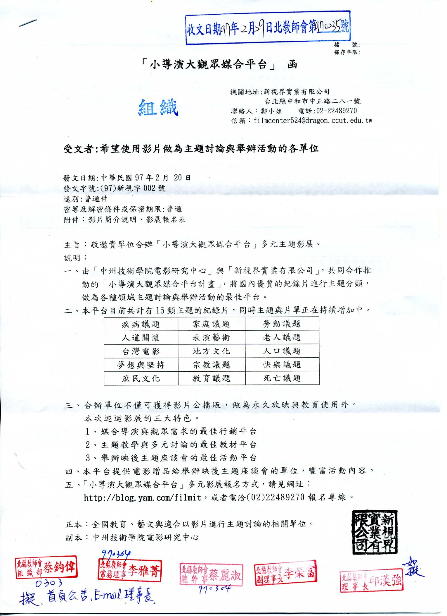 [代轉訊息]轉知「小導演大觀眾媒合平台」多元主題影展