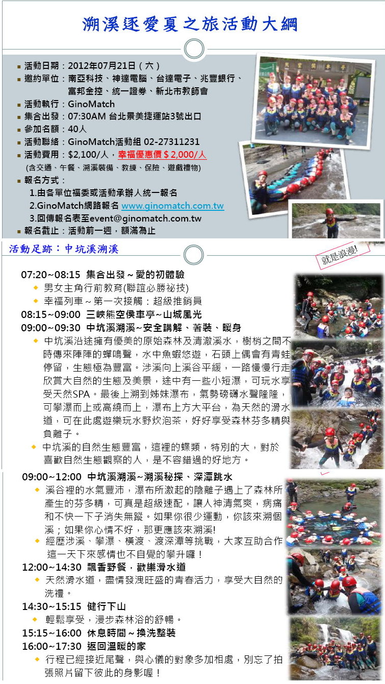 [代轉訊息]未婚聯誼活動-溯溪逐愛夏之旅