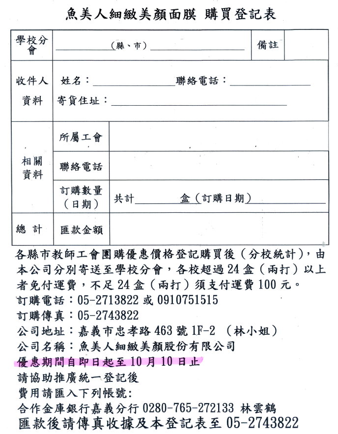 [代轉訊息]魚美人細緻美顏面膜優惠
