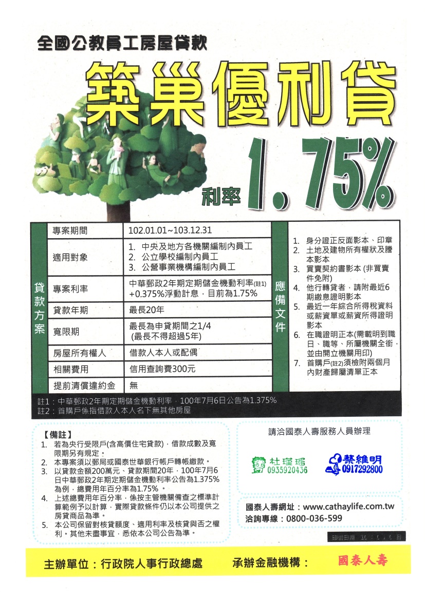[會訊廠商區]轉知全國公教員工優惠房貸訊息