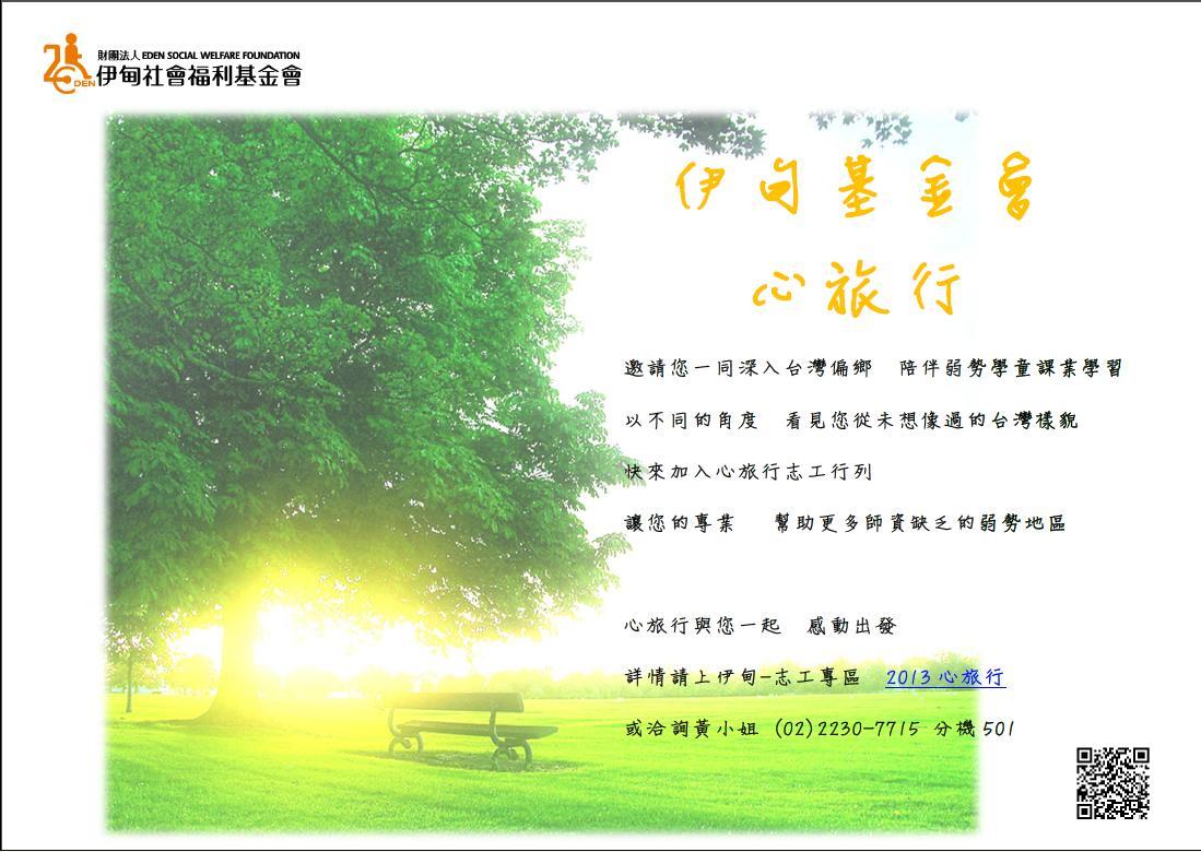 [代轉訊息]伊甸基金會-2013 心旅行