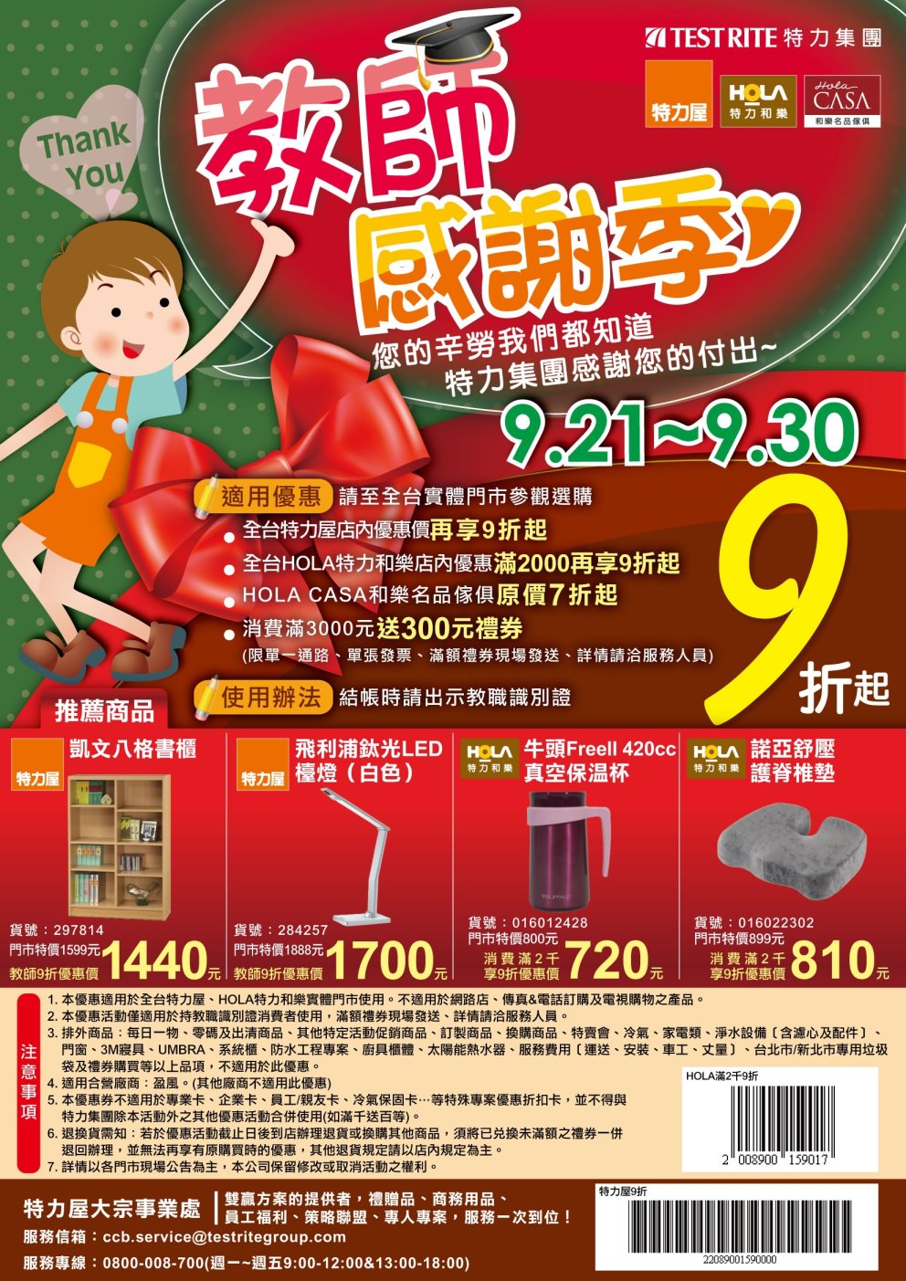 HOLA特力和樂教師節優惠活動,請參閱附件DM!
