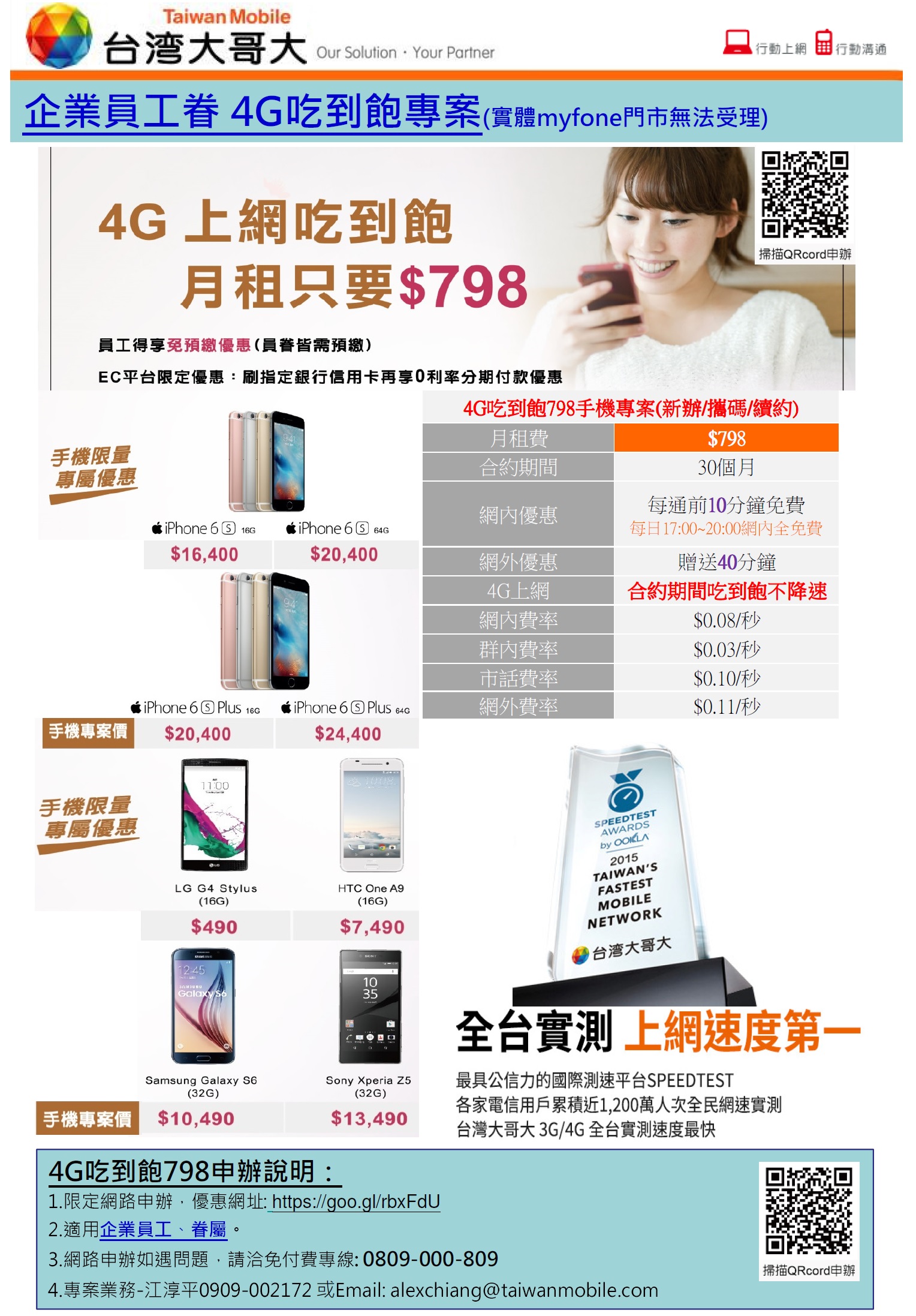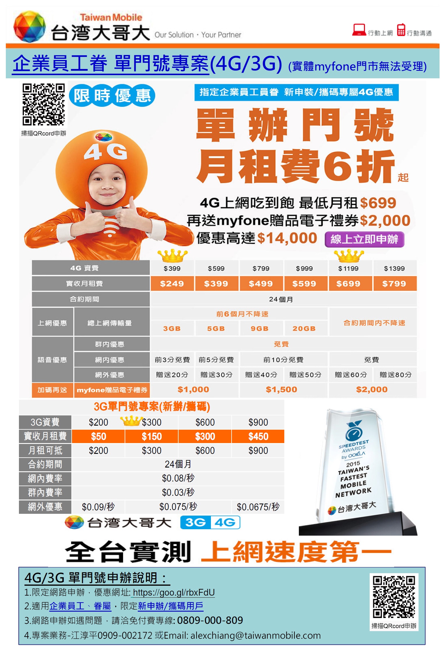 [電腦/電信/周邊]台灣大哥大 企業員工眷專屬優惠