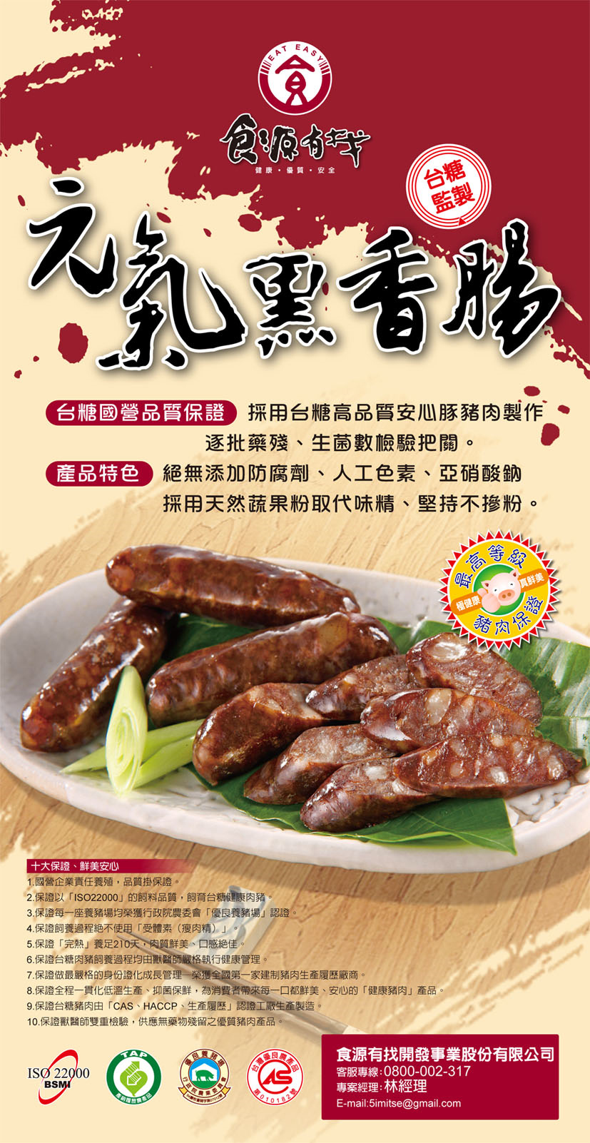 [農業產銷/特產]元氣黑香腸~國家生產履歷認證工廠製造