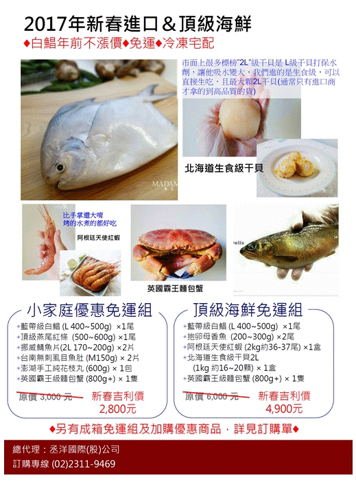 [農業產銷/特產]2017新春進口頂級海鮮優惠