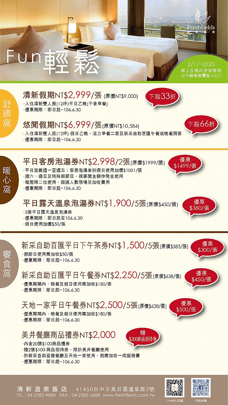 [旅行社]《清新溫泉~台中唯一五星級溫泉飯店》﹌春季旅展價﹌只有4天,手腳要快喔!