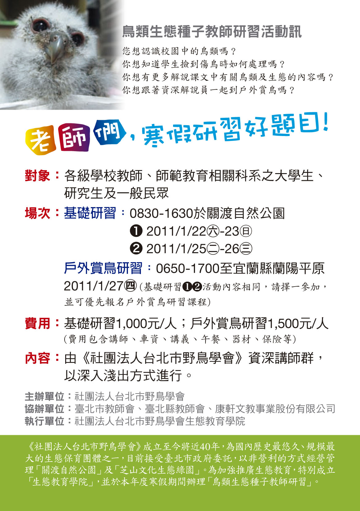 預設 [研習訊息]台北市野鳥協會100年度寒假鳥類生態教師研習