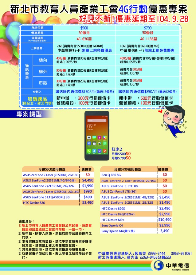 [其他]中華電信4G行動優惠專案~928截止!