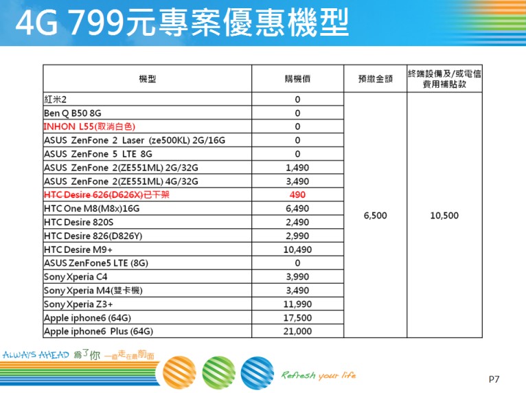 4G799元購機優惠機型