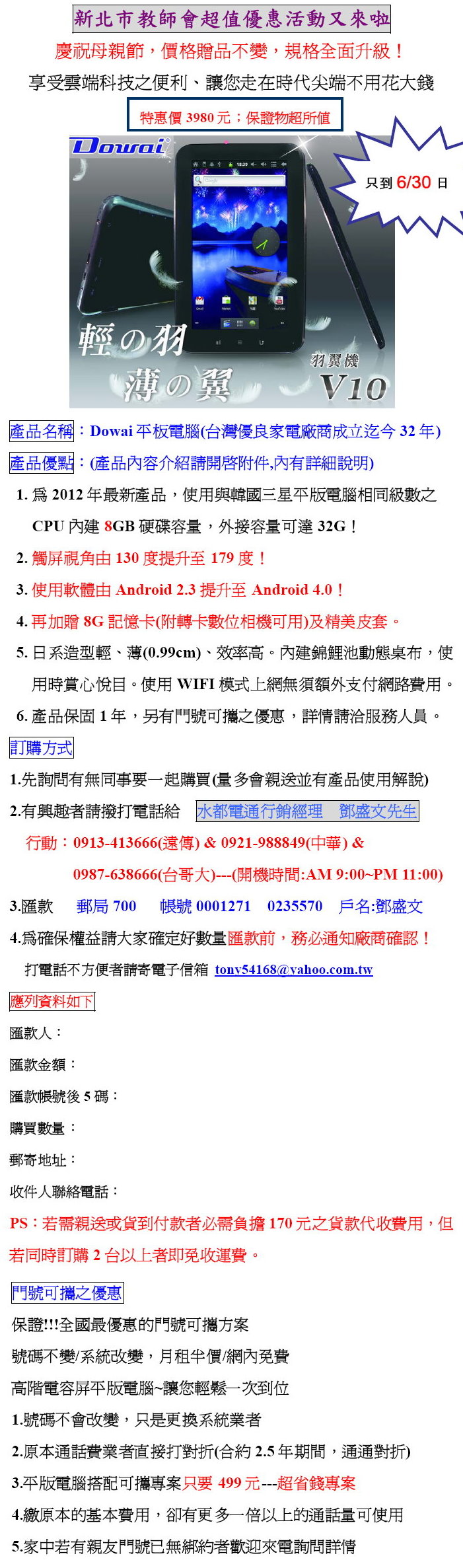 [代轉訊息]Dowai平板電腦優惠第二波