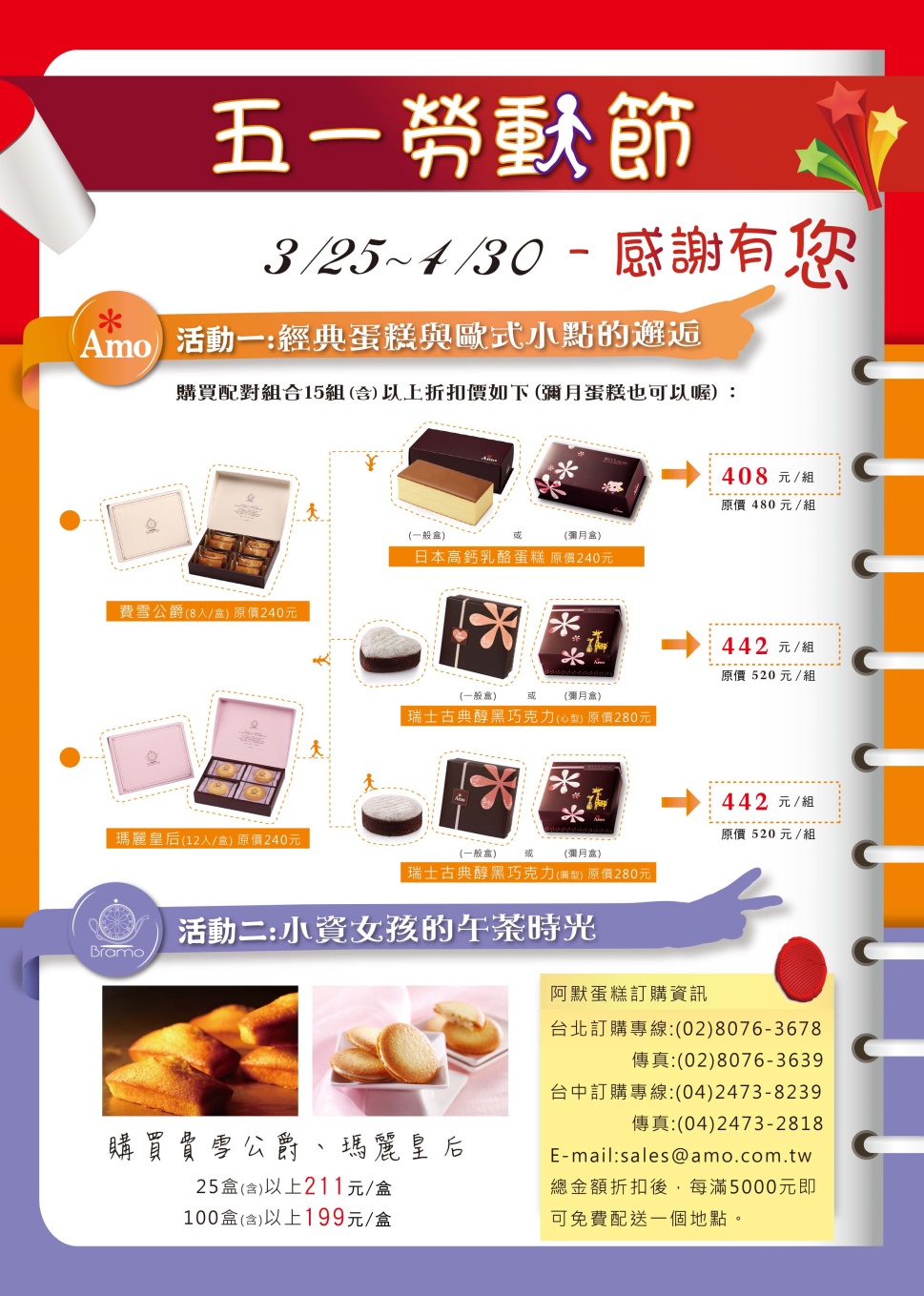 [代轉訊息]AMO阿默蛋糕-5/1勞動節團購優惠