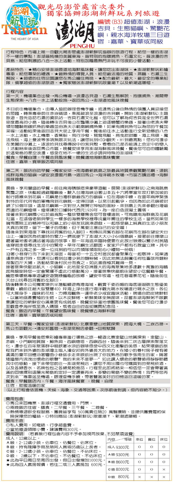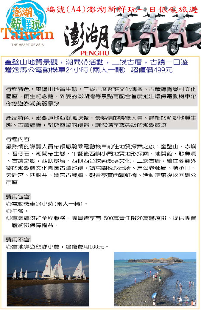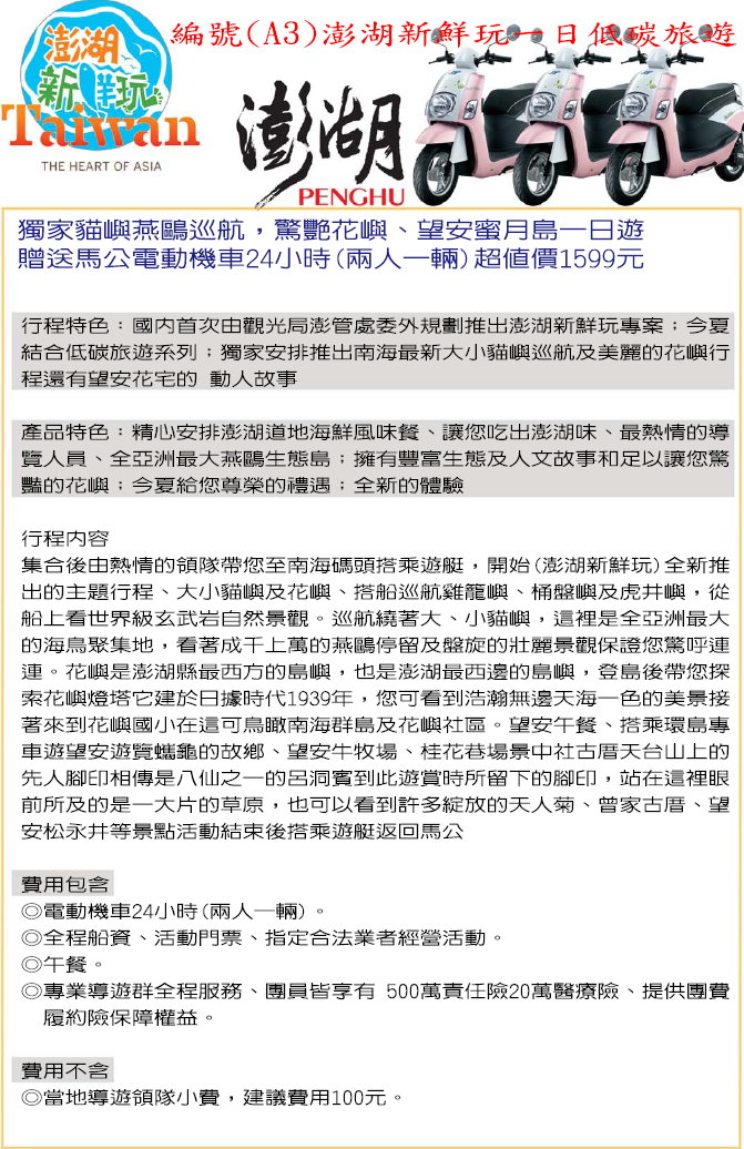 大立旅行社-澎湖新鮮玩專案 優惠價到6/30止