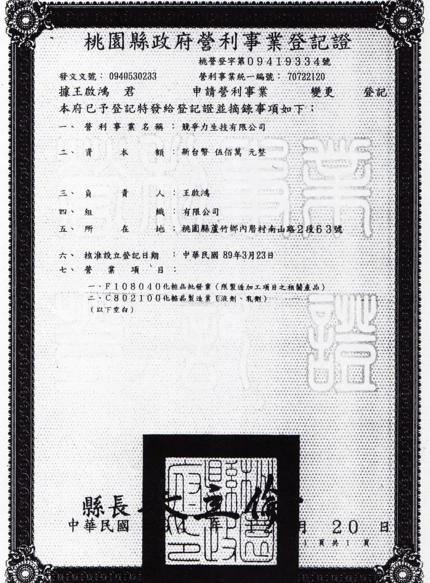 公司營業登記證、產品檢驗證明及產品DM請點附件下載閱覽