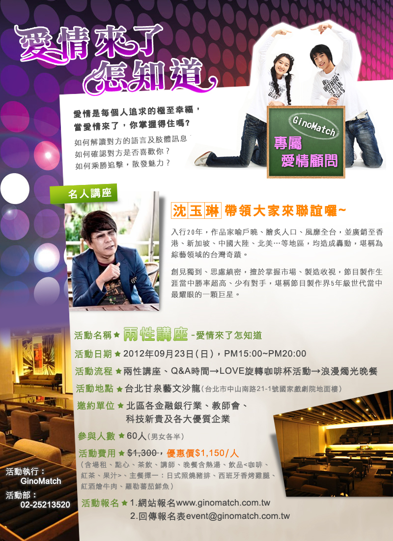 未婚聯誼活動:兩性講座-愛情來了怎知道