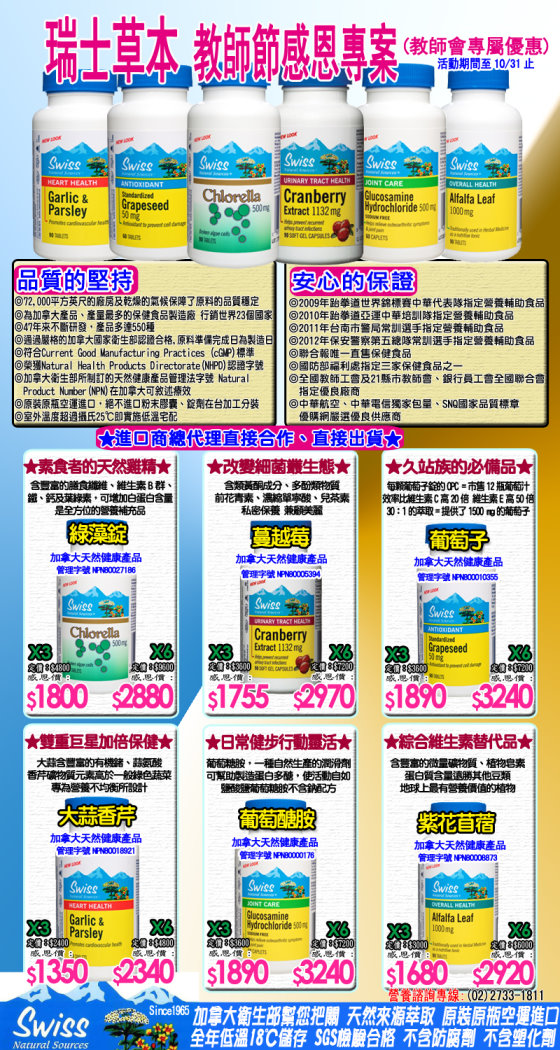[代轉訊息]瑞士草本保健系列教師節感恩特惠專案
