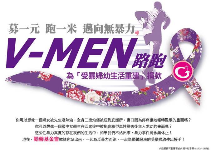 [代轉訊息]勵馨基金會-「募一元,跑一米 邁向無暴力」V-Men路跑活動