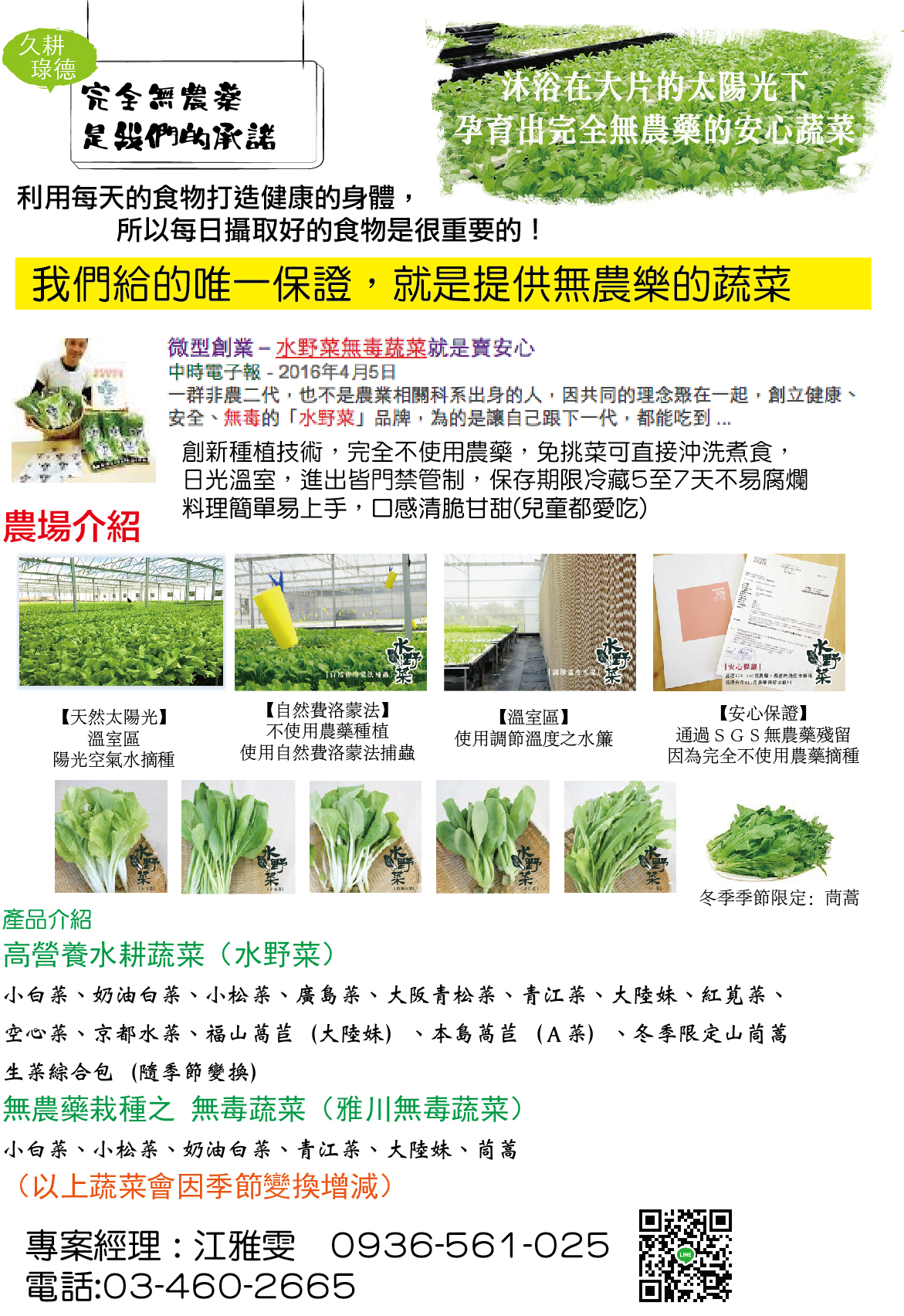[農業產銷/特產]健康安心好吃專案-無農藥水耕蔬菜、無農藥無毒蔬菜