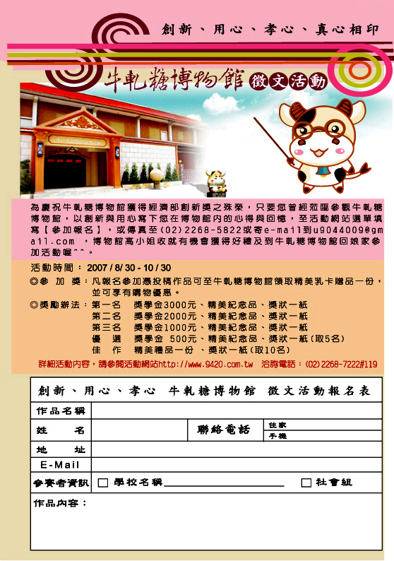 牛軋糖博物館『真心相印 寫好文 拿獎金 』 徵文活動進入倒數階段2.doc