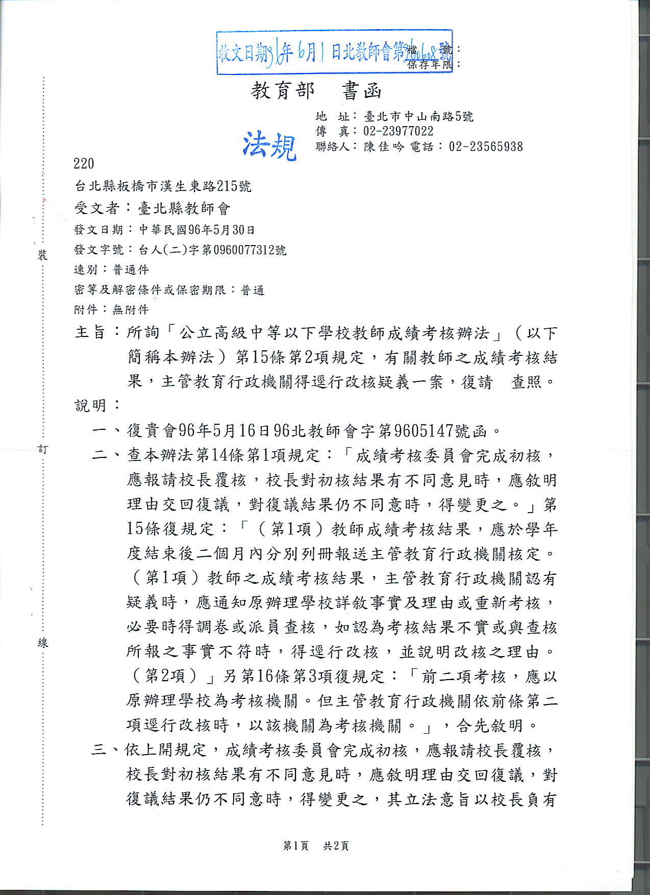 教育部書函-教師之成績考核結果主管教育機關得逕核疑義1.jpg