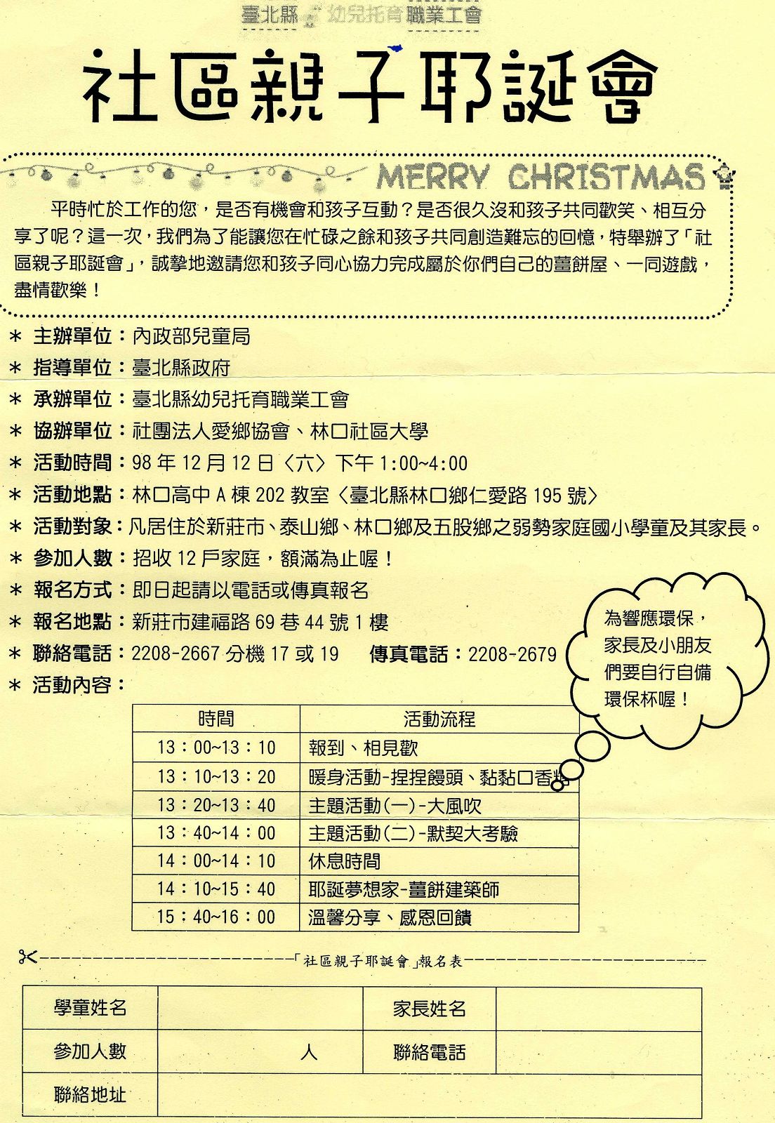 台北縣幼兒托育職業工會,敬邀大家參加「社區親子耶誕會」