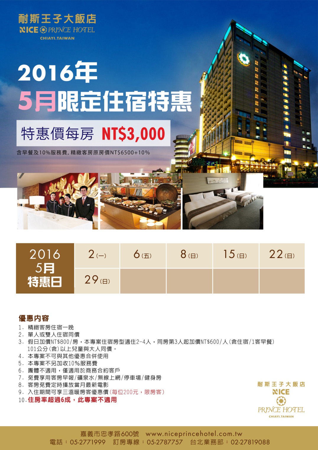 [住宿/飯店]嘉義耐斯王子大飯店2016年5月住房優惠