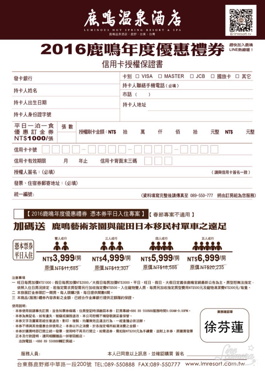 [住宿/飯店]2016台東鹿鳴溫泉酒店年度優惠禮券