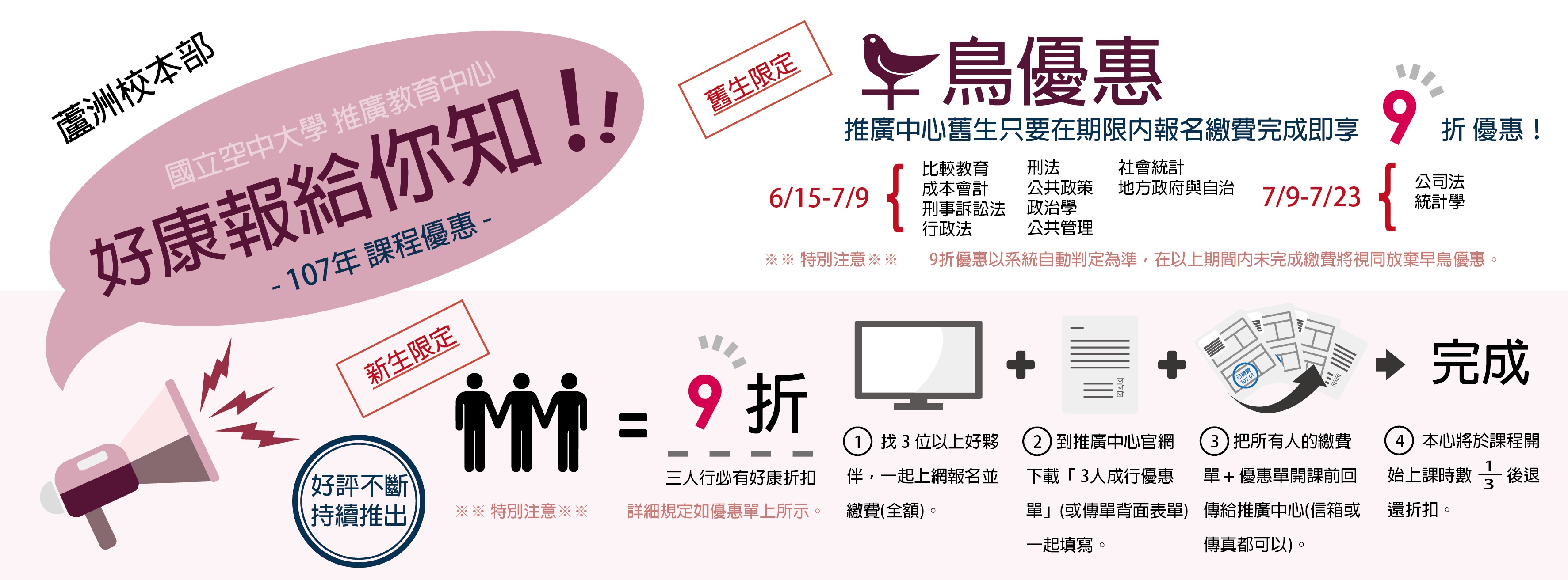 [代轉訊息]國立空中大學推廣教育中心–「107年第三季推廣教育課程」招生簡章及優惠方案