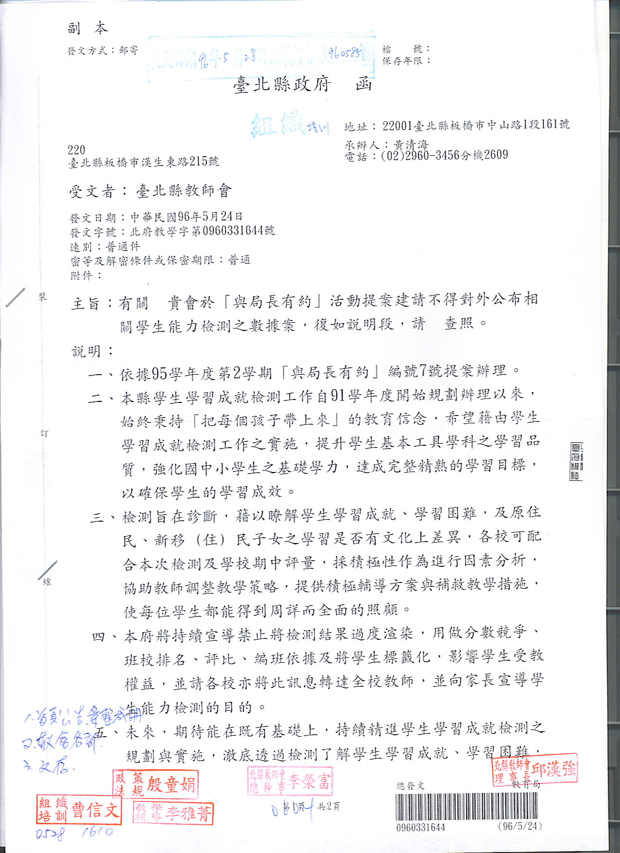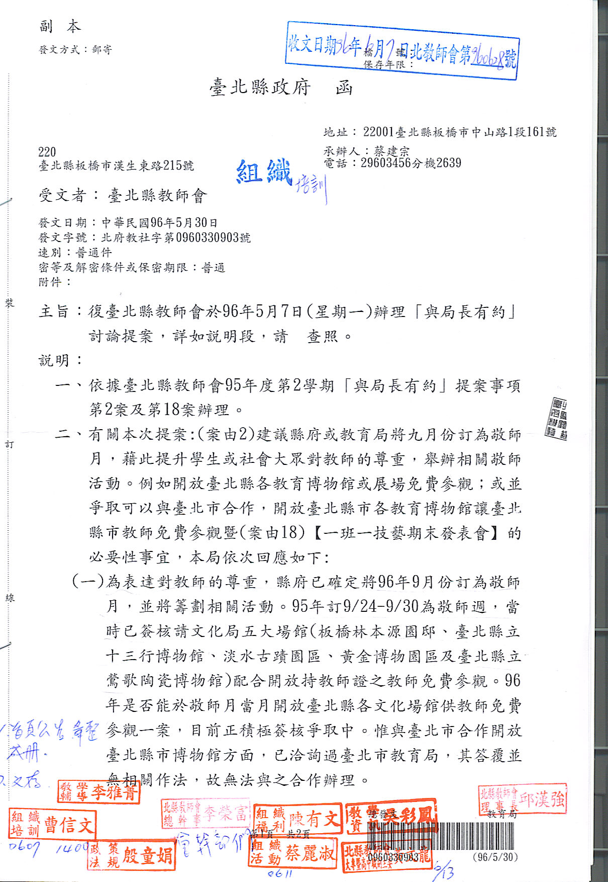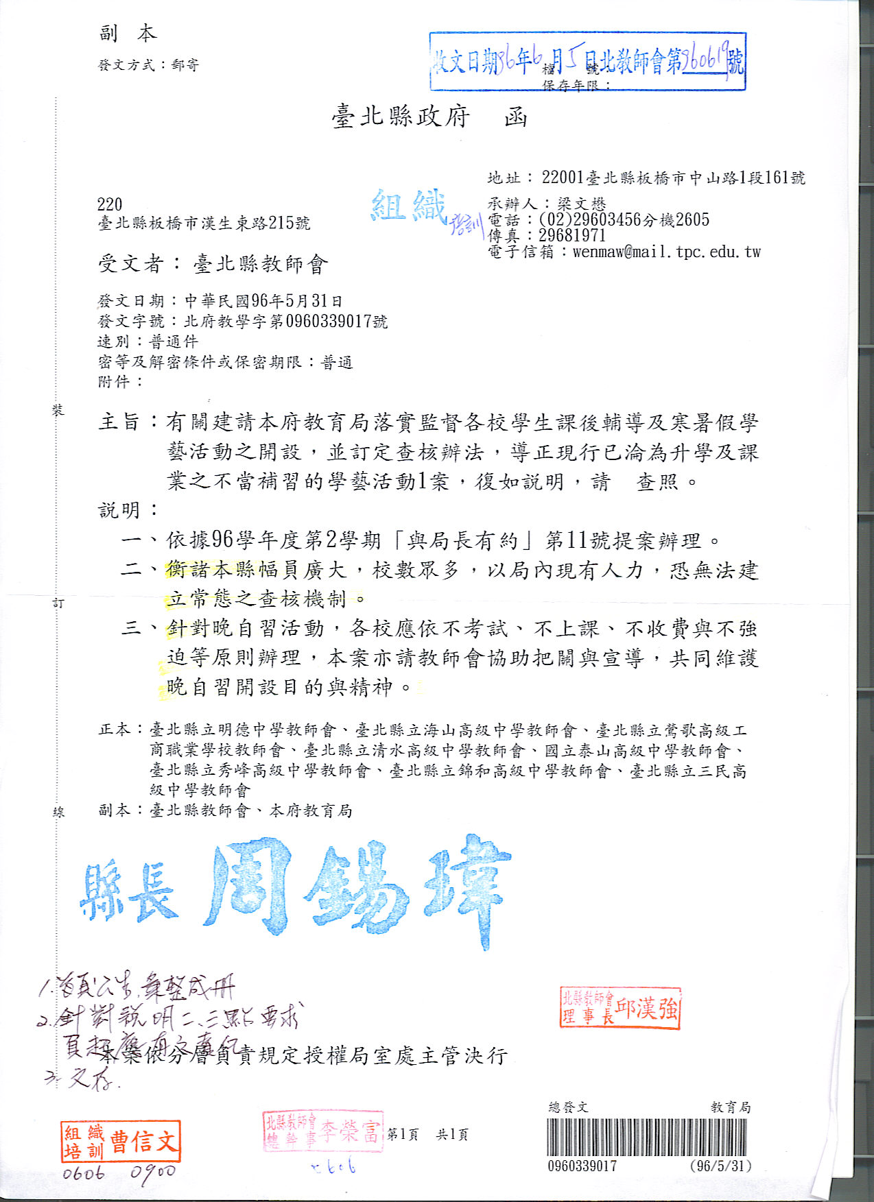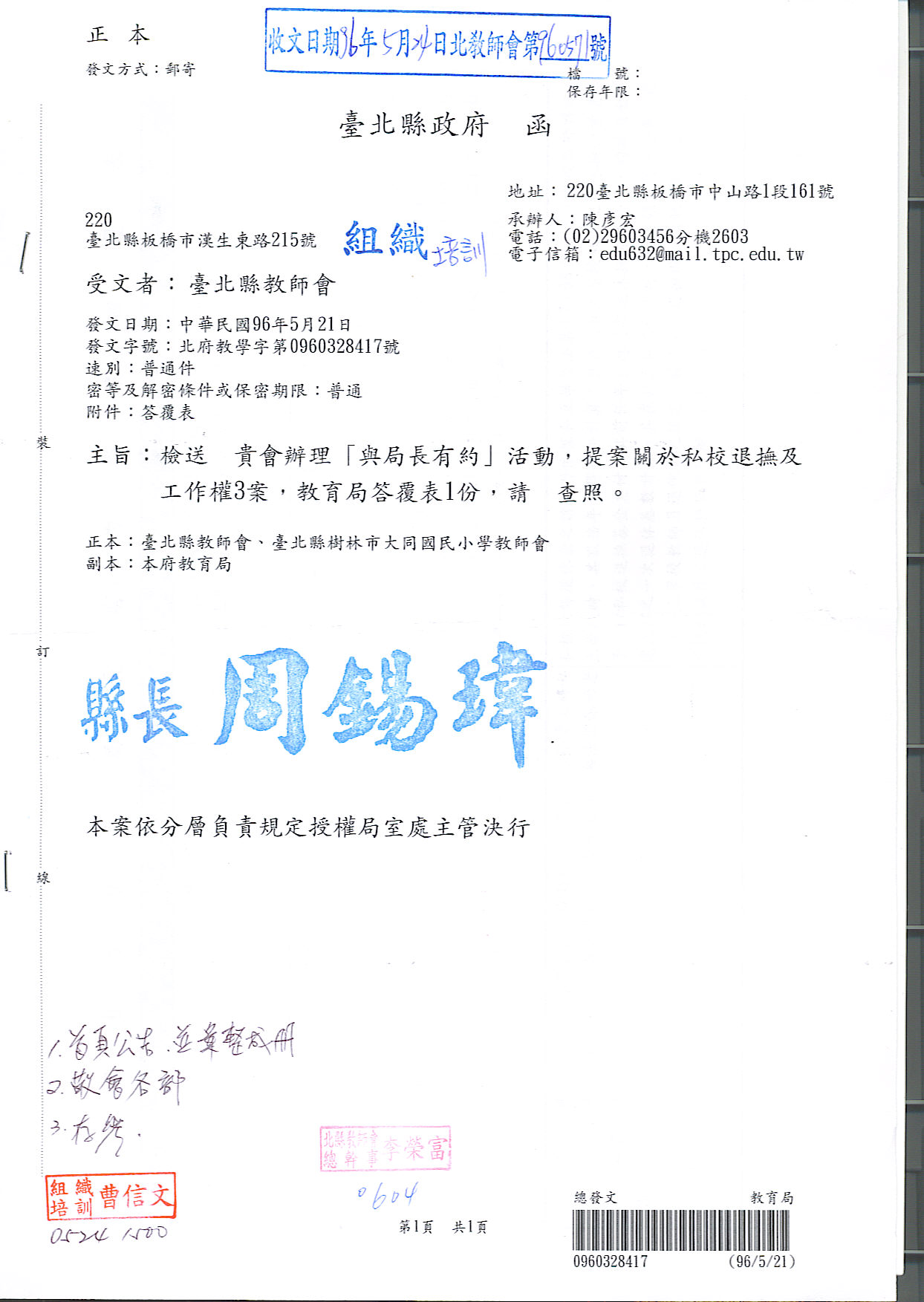預設 [重要公文]960507與局長有約教育局相關回文